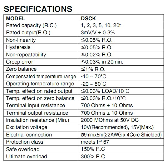 韓國bongshin DSCK-1t稱重傳感器技術參數: