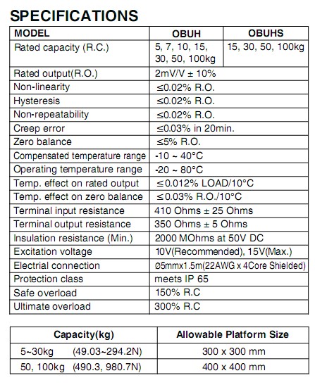 奉信OBUH-30kg技術參數: