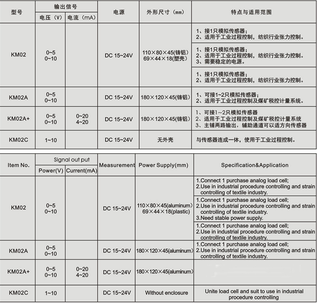 除KM02變送器其它型號詳情請點擊:美國SUNCELLS稱重傳感器,儀表