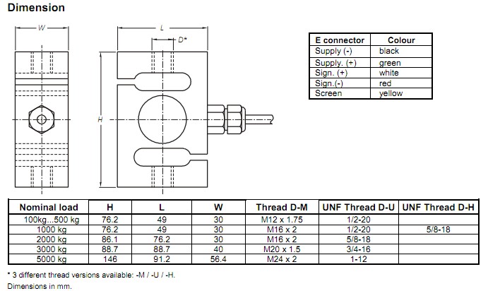 典型拉力/壓式力傳感器(S 型)具有內螺紋,設計精度高達 0.02%(可選)。型號 F2270 系列是用于稱重系統和測量靜態拉力及壓式力的完美之選。其額定負載從 100 kg 開始,直至 5000 kg。