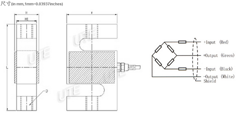 UBS傳感器,臺灣UTE UBS稱重傳感器規格尺寸: