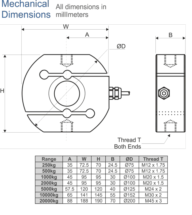 Ranges 250, 500, 1000, 2000,5000, 10000, 20000kg