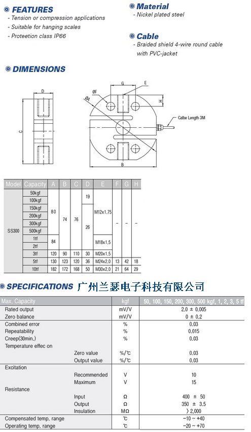 韓國CURIOSITY SS300拉壓力稱重傳感器采用合金鋼,不銹鋼材質膠密封防護處理,安裝容易,使用方便,適用于吊秤,配料秤,機改秤等電子測力稱重系統.額定載荷50kgf,100kgf,150kgf200kgf,300kgf,500kgf1tf2tf,3tf,5tf,10tf