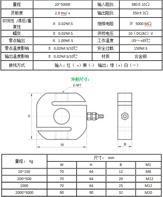 產品類型:稱重傳感器/拉壓力S型傳感器