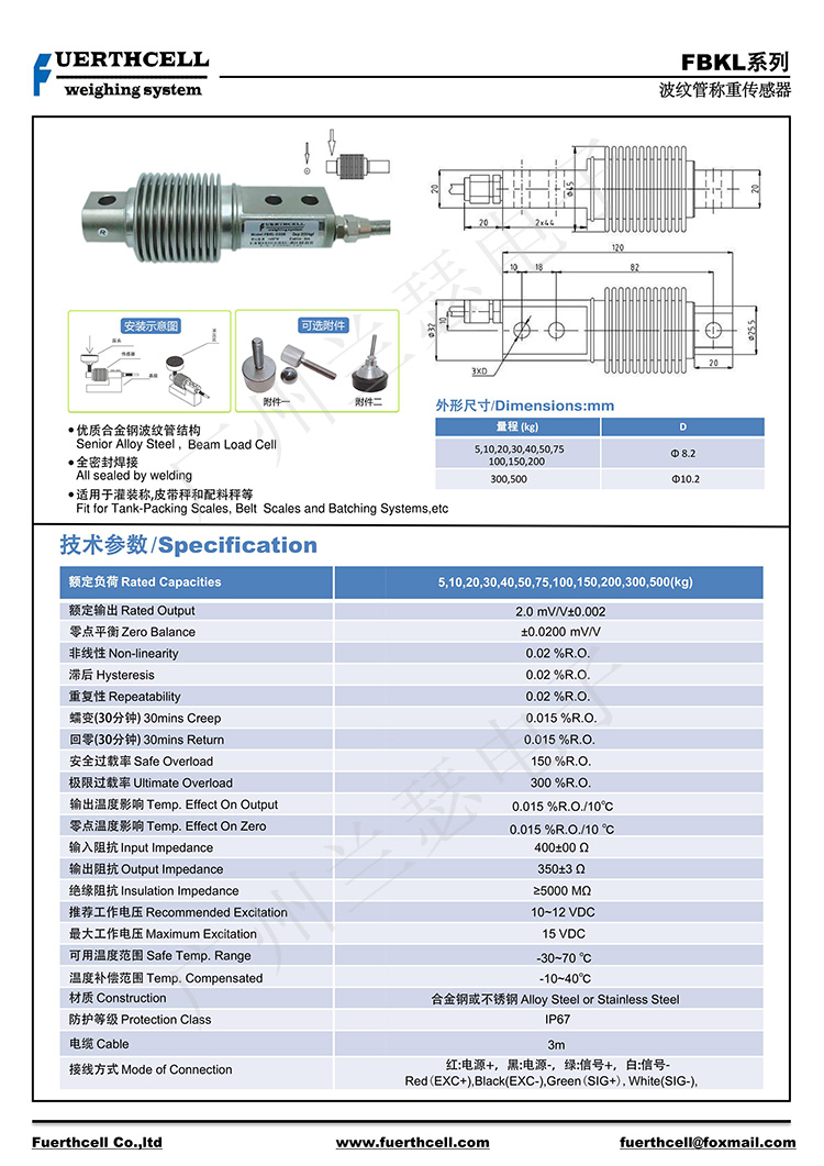 美國FUERTHCELL FBKL-50KG稱重傳感器產品參數: