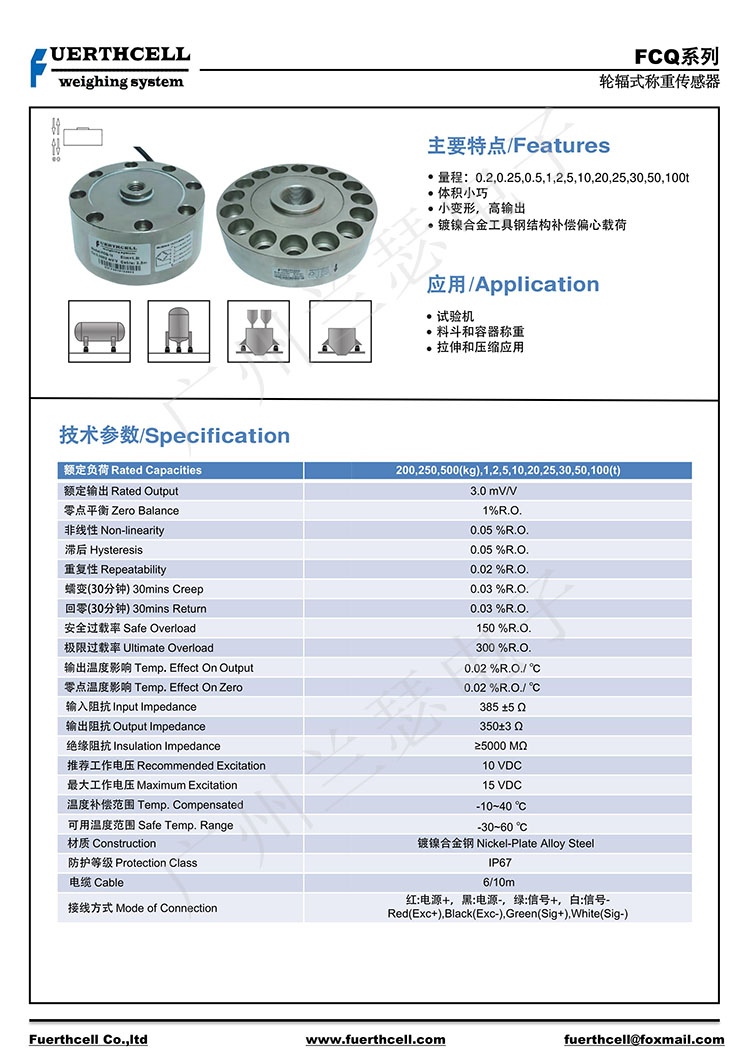 美國FUERTHCELL FCQ-1T稱重傳感器產品參數: