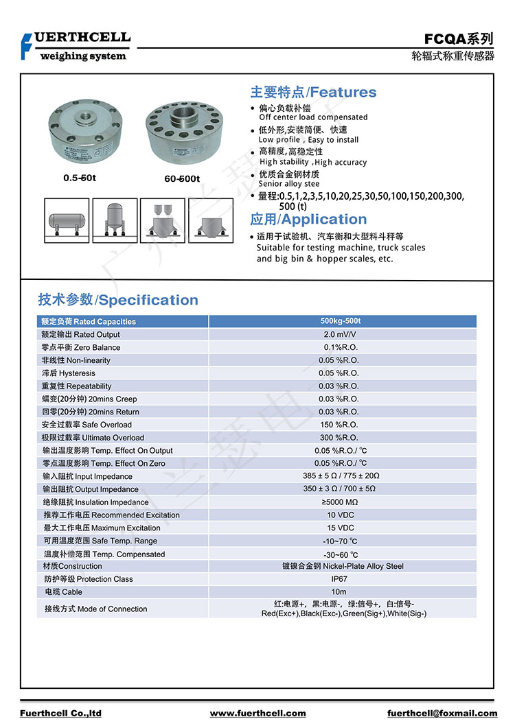 美國FUERTHCELL FCQA-100T稱重傳感器產品參數:
