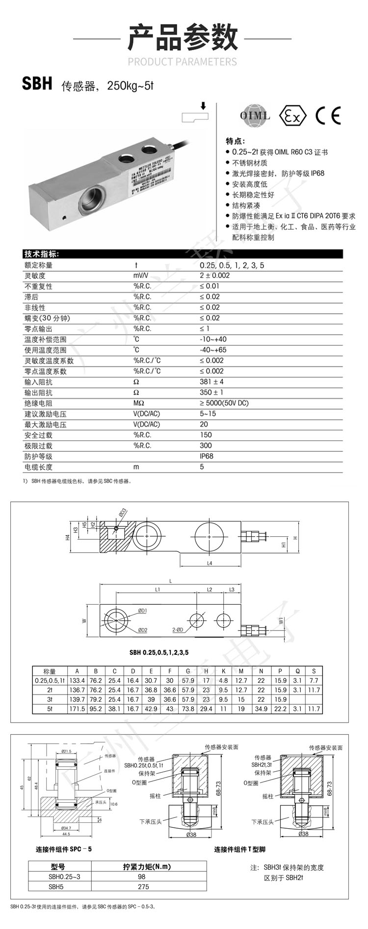 注:SBH-0.25是梅特勒-托利多傳感器中容量為0.25T,那么型號就是SBH-0.25。以止類推得到SBH系列的所有型號。