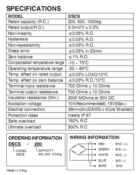| Bongshin DSCS-200KG,DSCS-500KG,DSCS-1000KG稱重傳感器 |