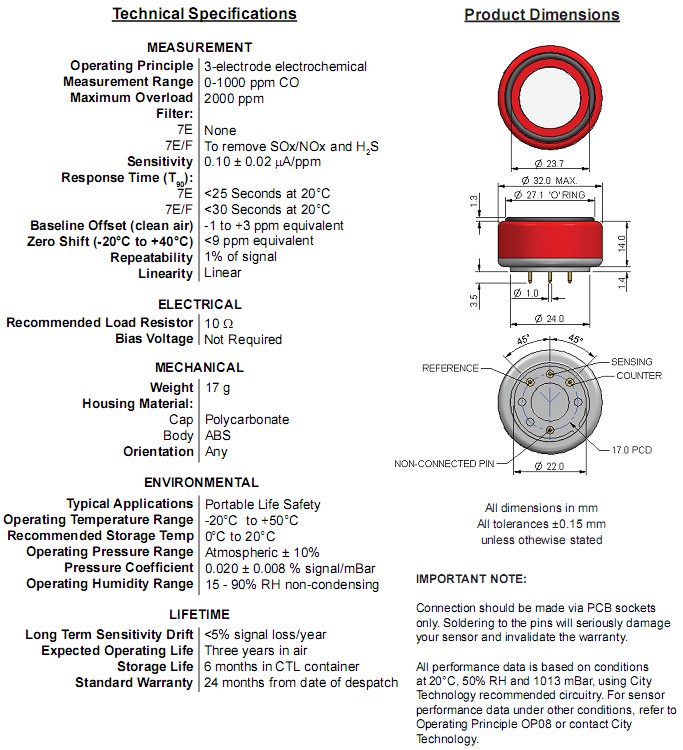 英國CITY 7E/F一氧化碳CO傳感器概述